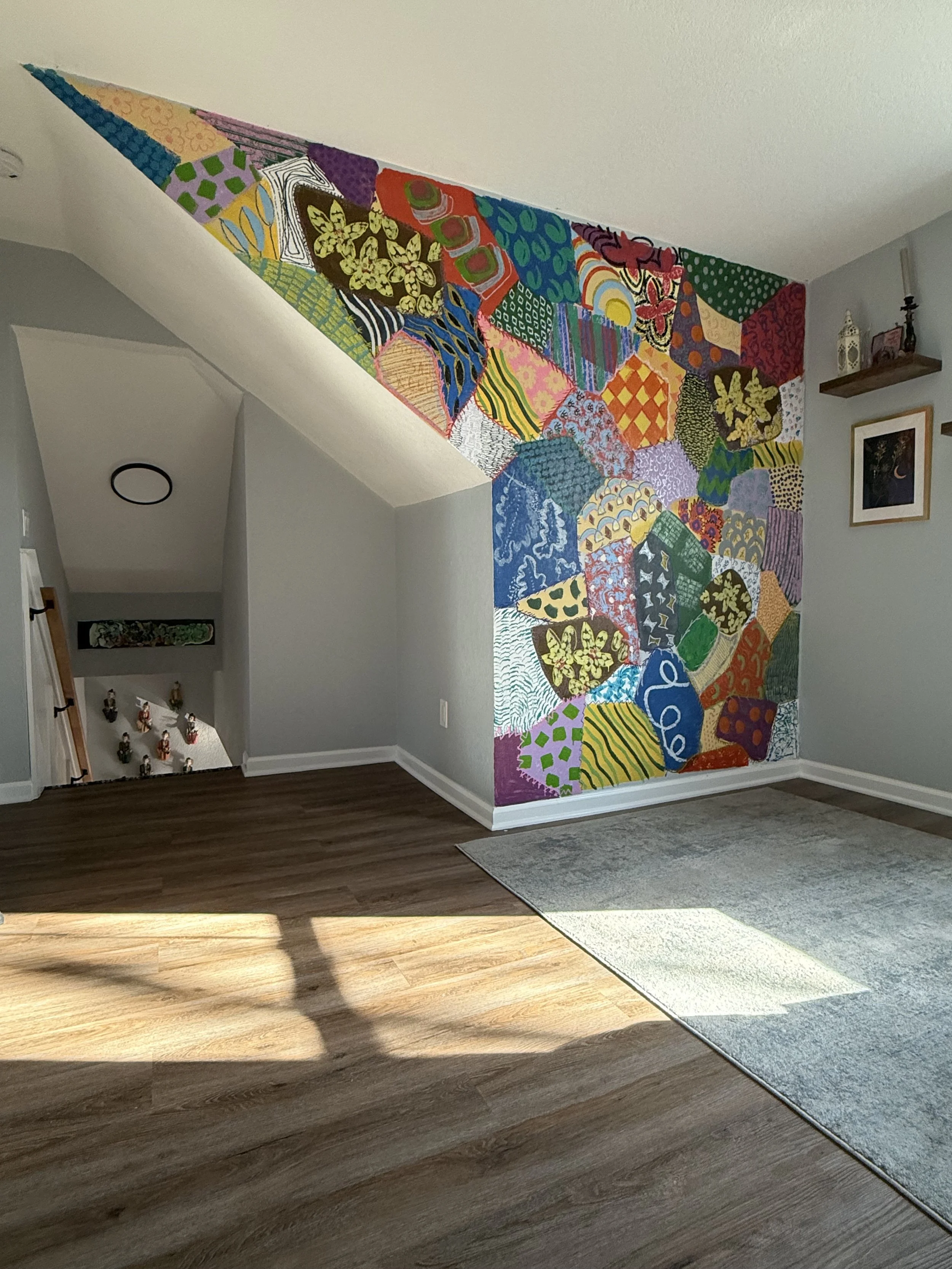 Color-driven wearable and wall art across murals, painting, and objects-offering commissions in murals and textile based pieces.